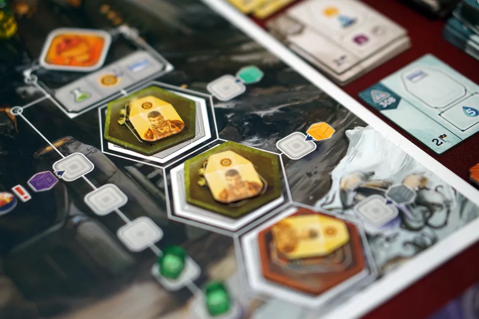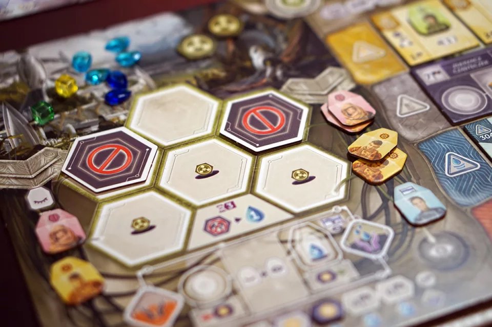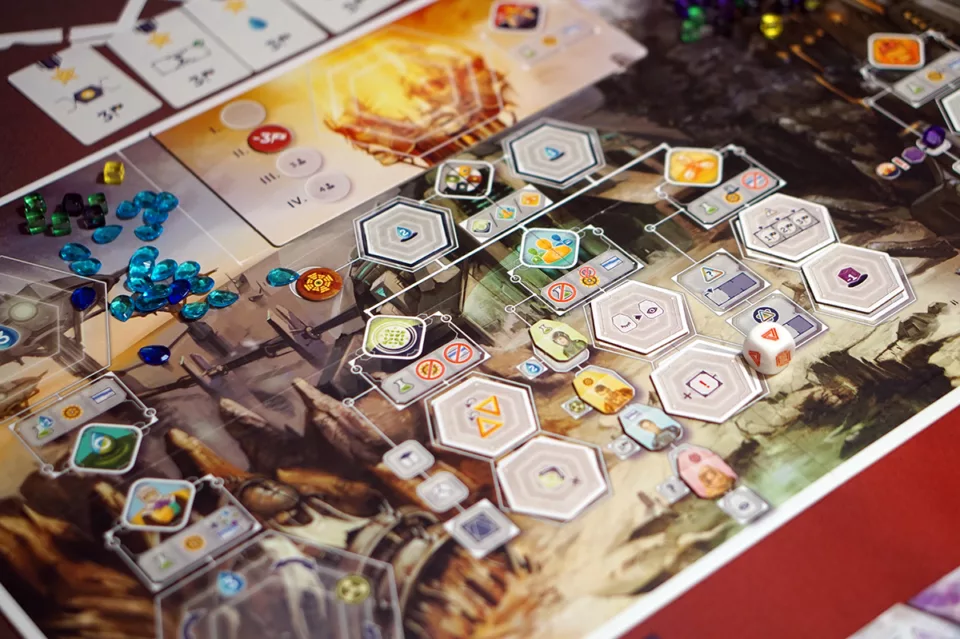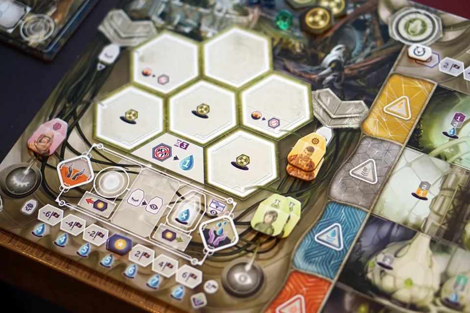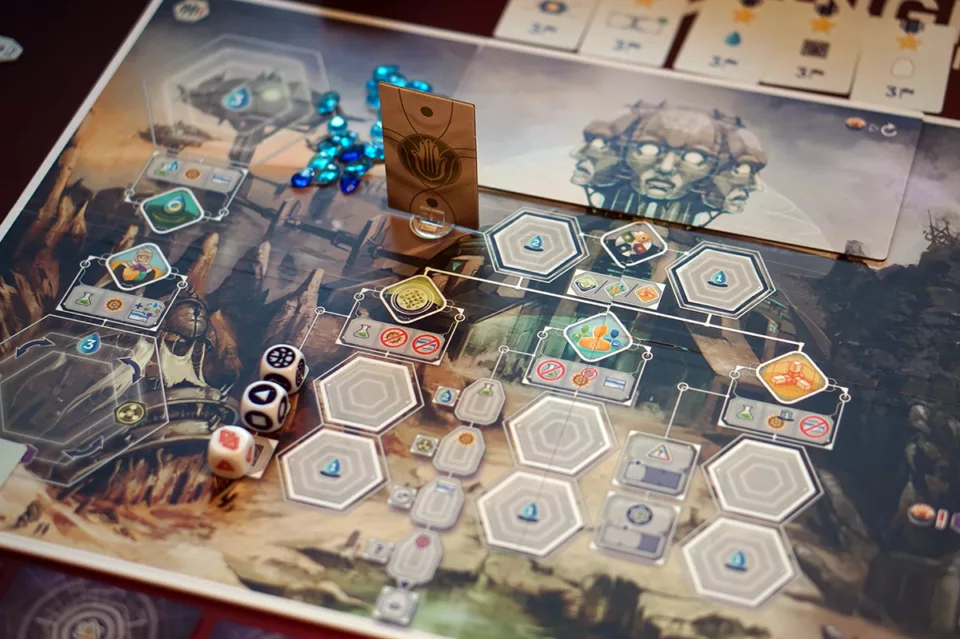 Pola na naszej planszetce gracza nie są zagrożone obecnością innych graczy, więc jeżeli nie jest nam śpieszno z nich skorzystać, to nie powinniśmy tego robić. Głównie dlatego, że ktoś może nas wyprzedzić i zająć pola na planszy głównej, które są dostępne dla wszystkich. W trakcie gry, będziemy wydobywać zasoby, wykorzystywać je do budowy budynków, które dadzą nam nowe możliwości i rozwiną silniczek zwiększając liczbę pól na naszej planszy gracza. Oprócz tego będziemy pozyskiwać nowych pracowników (cztery rodzaje, w tym jeden joker, które mają różne możliwości/skuteczności na różnych polach akacji), żetony postępu (które punktują na koniec gry lub umożliwiają budowę super projektów), oraz handlować i pozyskiwać wodę.