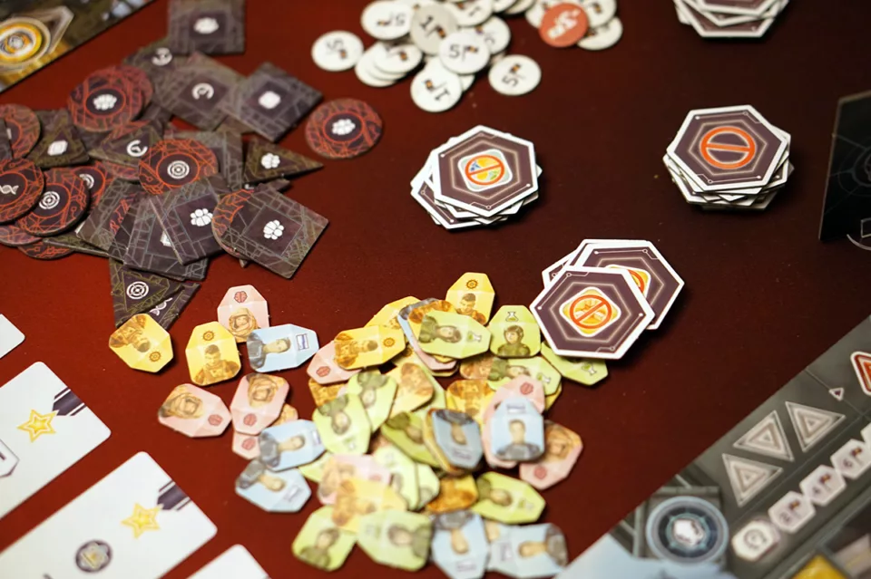 Regrywalność jest bardzo wysoka z kilku powodów. Pierwszym, ale nie najważniejszym, jest wspomniana już losowość. Drugim, zdecydowanie bardziej znaczącym jest multum podejść do samej rozgrywki i możliwości punktowania. Trzecim, równie ważnym w mojej ocenie, co podbija punkt drugi, jest asymetria, którą budujemy sobie podczas setupu wybierając frakcję (dostępne cztery w podstawce), liderów (po dwóch na stronę) oraz stronę planszetek punktowania ewakuacji oraz frakcji (A i B): mniej i bardziej skomplikowana. Jest tego dość sporo.