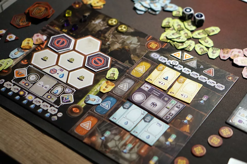 Gra skaluje się nieźle, chociaż mam wrażenie, że na dwóch jest trochę luźno, szczególnie jak nie wyjdzie na plansze dużo egzoszkieletów. Nie psuje to jednak odbioru, a jedynie zwiększa możliwości. Zdecydowanie większą presję odczuwamy na trzech graczy i ten układ podoba mi się najbardziej, bo korzystamy z tej samej planszy, co w przypadku dwóch graczy. W przypadku pełnego składu odwracamy planszę i mamy trochę większej przestrzeni, ale nie tak dużo, jak na dwóch, co powoduje, że jest takim wyborem środka. Oczywiście, co kto lubi. Jak dla mnie skalowanie wypada świetnie.
