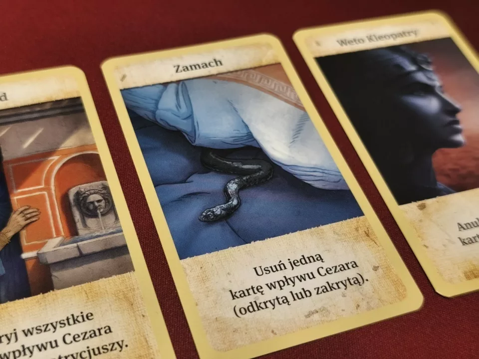 Jeżeli jesteśmy w stanie pogodzić się z częściowo losowym aspektem rozgrywki albo wręcz lubimy tę nutkę niepewności w grach, szacowanie szans przy odrobinie loterii to Cezar i Kleopatra może przypaść do gustu i pozwoli czerpać frajdę z zabawy grą. Przystępne zasady, nieskomplikowany mechanizm zagrywania kart pozwala zasiąść do gry nawet młodszym graczom. Zarys polityczno-historyczny to wyłącznie tło, ale da się odczuć rywalizację o wpływy z elementami przechytrzenia rywala.