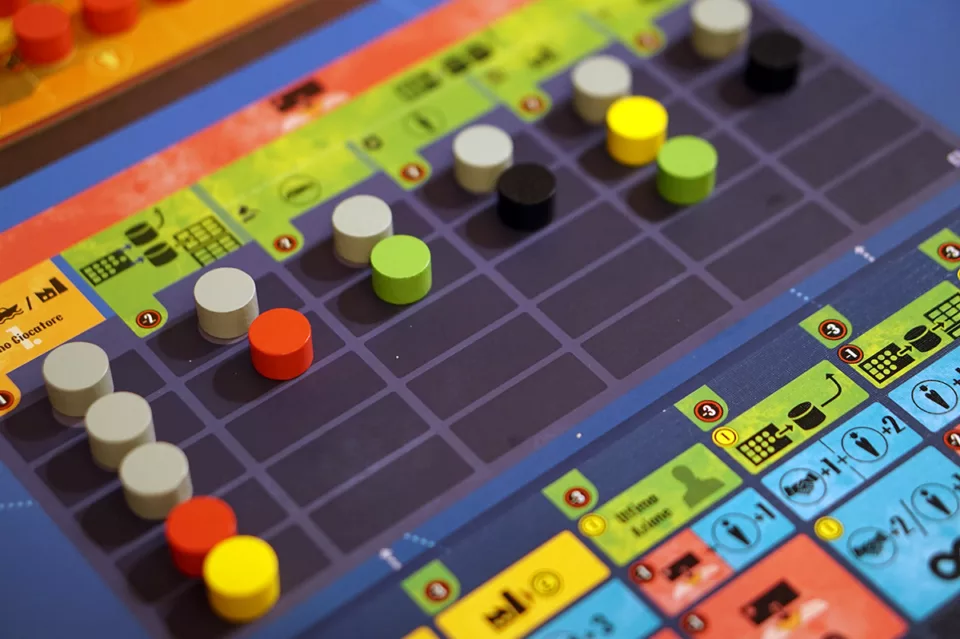 Ciekawe jest to, że miejsca w których znajdą się walce zostaną przeniesione na kolejną rundę tworząc nową kolejność, więc olbrzymie znaczenie ma to, z których akcji skorzystamy i gdzie rozstawimy nasze żetony.