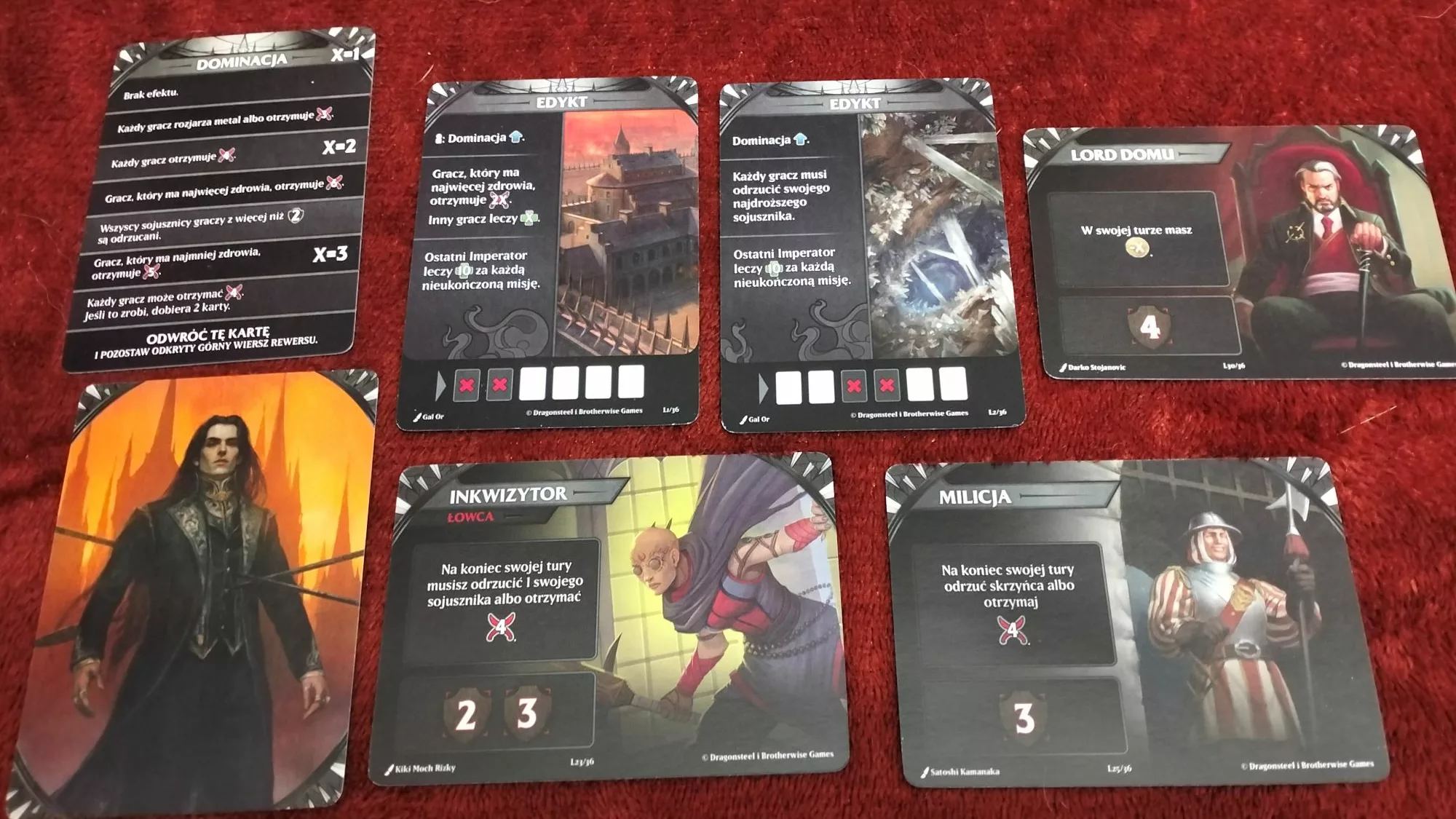Talia Imperatora wykorzystywana w tym trybie jest po prostu nudna. Edykty nie tworzą żadnej historii, dodatkowi przeciwnicy są praktycznie bezimienni i nie mają w ogóle polotu. Dodam, że instrukcja też nie dostarcza nam zbyt wiele fabuły – twórcy chyba po prostu wyszli z założenia że każdy czytał książki i sobie sam dopowie co się dzieje na stole.