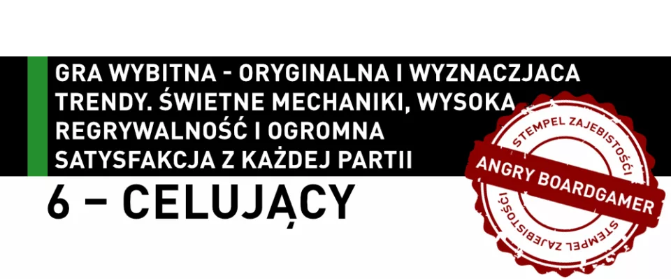 6 (celujący) to stary dobry Stempel Zjebistości, 10/10 w skali BGG – gra wybitna, oryginalna, nowatorska, kamień milowy w planszówkach, poziom igrzysk olimpijskich, każda rozgrywka jest jak Boże Narodzenie, zagram w nią obudzony pijany o 4 w nocy, zabieram ją na bezludną wyspę.