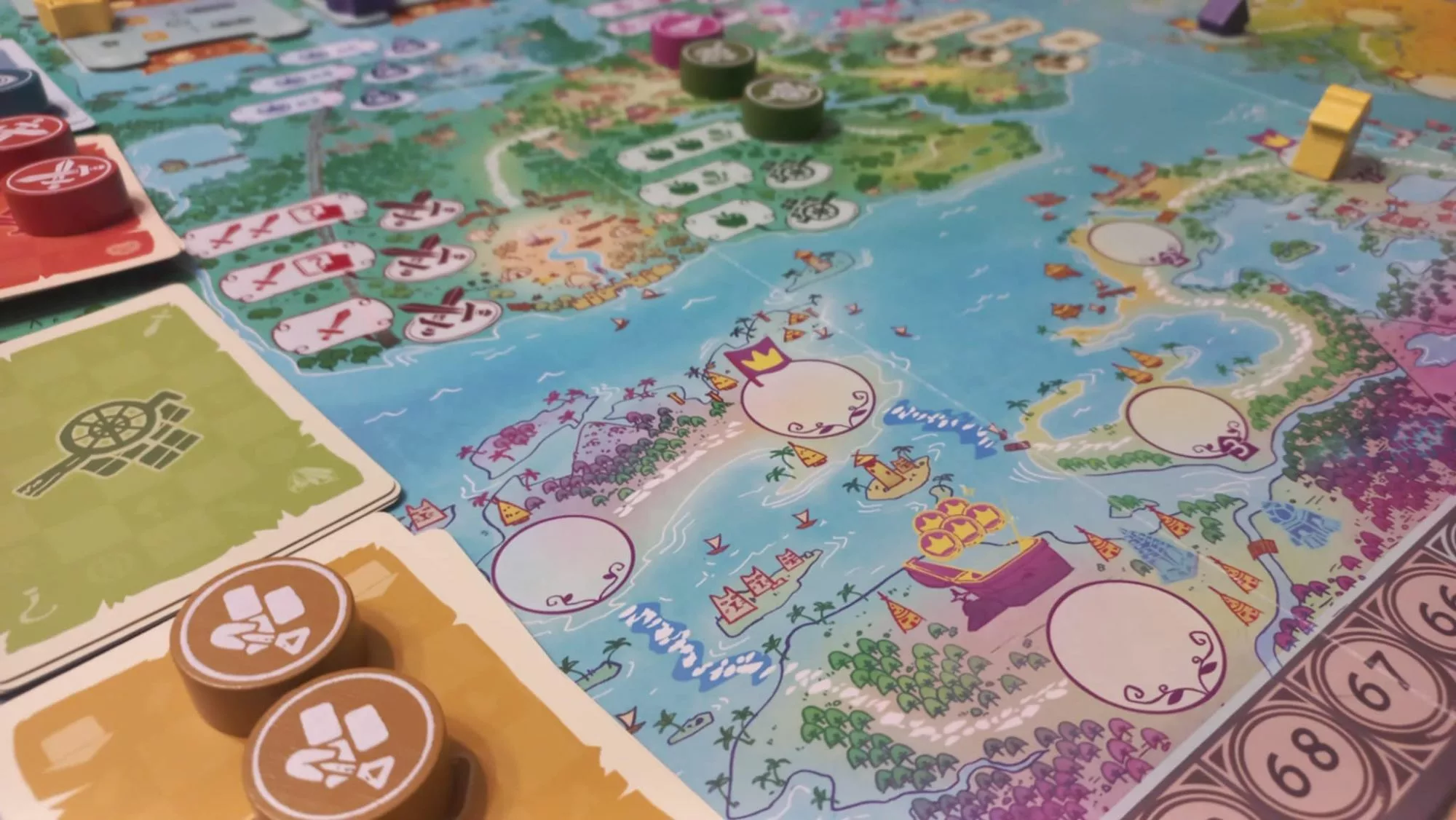 Czy te zasady są za proste? Dla niektórych pewnie tak, jednak mechanizm losowania i wybierania żetonów sprawia, że przed graczami zawsze są jakieś wybory. Nie da się grać optymalnie, poza tym można sobie podbierać karty czy zajmować miejsca na planszy. No i oczywiście ścigamy się na torach odkrywców – żadna z tych interakcji nie jest wielka, ale zebrane razem sprawiają, że choć nigdy bezpośrednio przeciwnikowi nie szkodzisz, to nie można tego nazwać pasjansem.