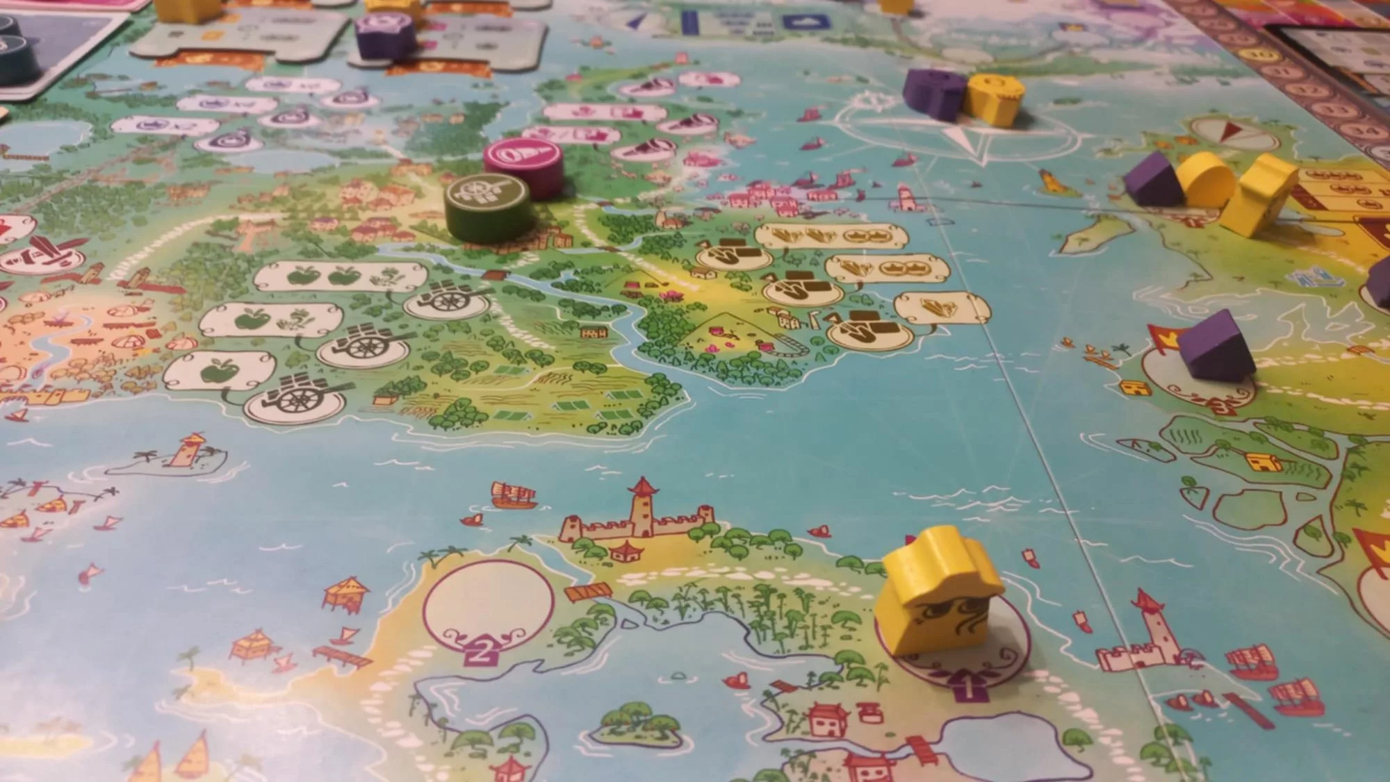 W ramach akcji gracze pozyskują różne zasoby, przesuwają swoich odkrywców (ta wspomniana ‚sytuacja na planszy”), budują domki i po prostu zbierają punkty. Mogą się specjalizować, np. bardziej inwestować w przemiał zasobów, stawiać nacisk na odkrywców albo zbierać karty z konkretnymi symbolami. Najpewniej jednak każdy będzie robić po trochu tego i tamtego. Każda akcja oznaczona jest przez ikony, powiązanymi z konkretnymi fragmentami planszy albo fazami gry. Zazwyczaj jest to coś w stylu „otrzymaj punkty ZA”, „przesuń pionek TAM”, albo „pozyskaj TO”. I tyle, można grać.