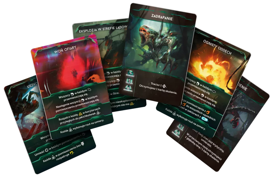 Każda runda zwiększa napięcie. Na planszy pojawiają się nowe zagrożenia, a przestrzeń wokół drużyny staje się coraz bardziej niebezpieczna.