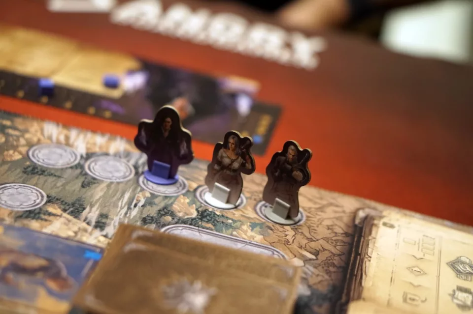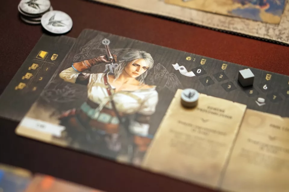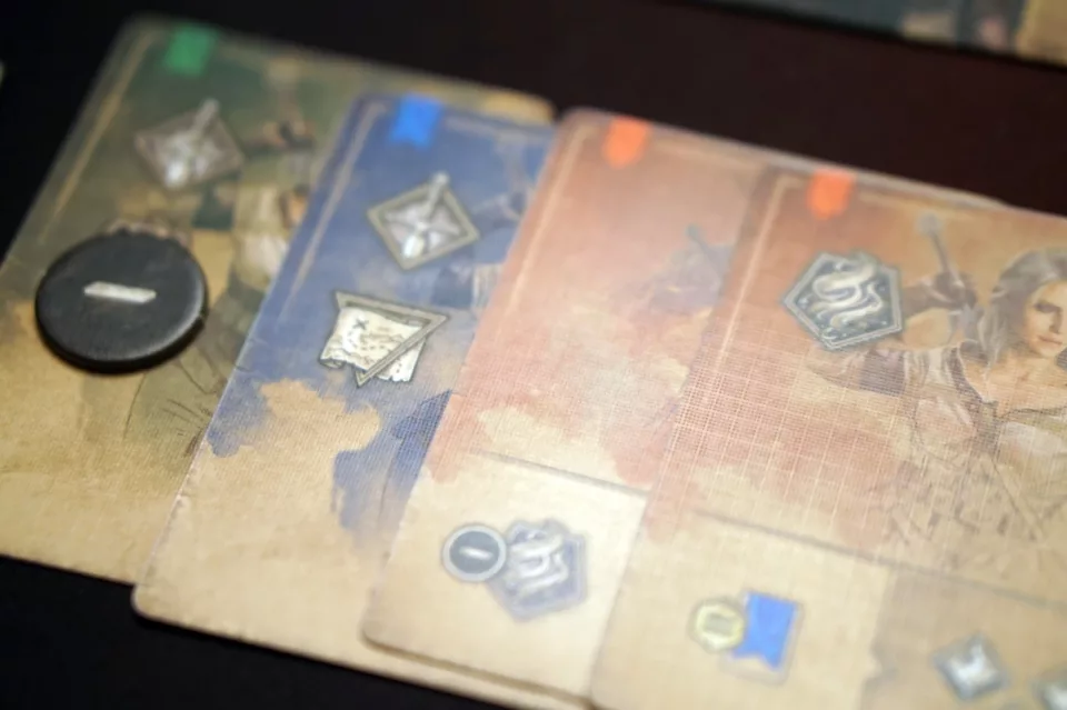 Będziemy mogli zagrać postaciami znanymi z sagi, opowiadań oraz gier: Geraltem, Ciri, Yennefer, Jaskrem oraz Vesemirem. Każda z tych postaci ma swoją startową rękę i — jak pewnie się domyślacie — wiedźminom łatwiej zbierać miecze niż magię lub dyplomację. Jeżeli na początku gry wybierzemy lub wylosujemy więcej postaci walczących, to praktycznie od razu będziemy wiedzieli, które symbole będą zbierane i w jaką stronę pójdzie historia, bo jest tak zwyczajnie łatwiej.